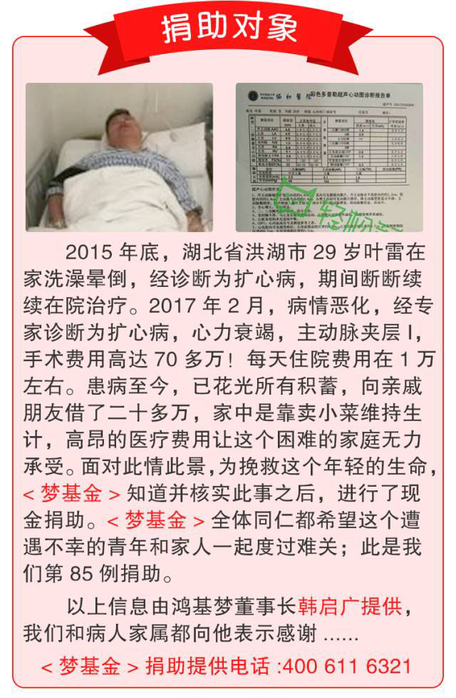 湖北29歲擴心病患者獲得捐助
